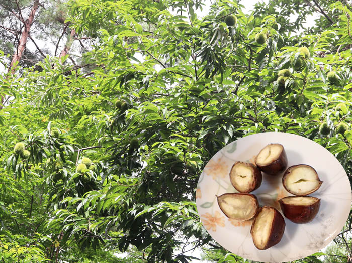 さらに奥にたくさん実をつけている木を見つけていた。今日はそこへ行ってみよう。緑色だった実は随分茶色く実って来たようだ。家に帰って割ってみようと数個もらう。大きなものを取ろうとすると、小さなものがついてくる。可愛いので、その小さな実も持って引き返そう。