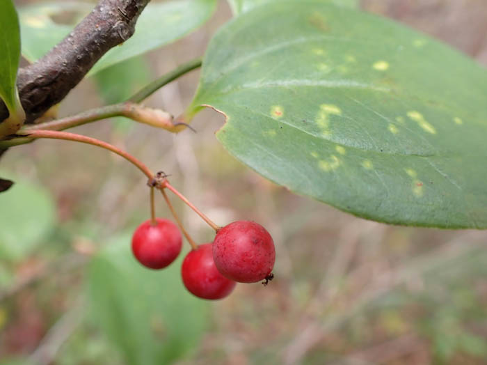 たくさん光っていたミヤマガマズミの赤い実もいつの間にかぐんと減ってしまった。小鳥の餌になったのか、落ちてしまったのか、気が付けば葉が落ちた枝の先にポツリと光っていたりする。コバノガマズミの実も同様、ずいぶん減ってしまった。新しい芽生えが落ち葉の下に隠れているのか、たくさんの実のうちいくつが次の実をつけられるまで育つのか、自然の厳しさを感じる。木ばかりではない、目立たない草の実も近づいて見れば素晴らしい造形美に唸らされる。そして時には嬉しくないお土産となってこっそりズボンの裾や袖に絡みついている。