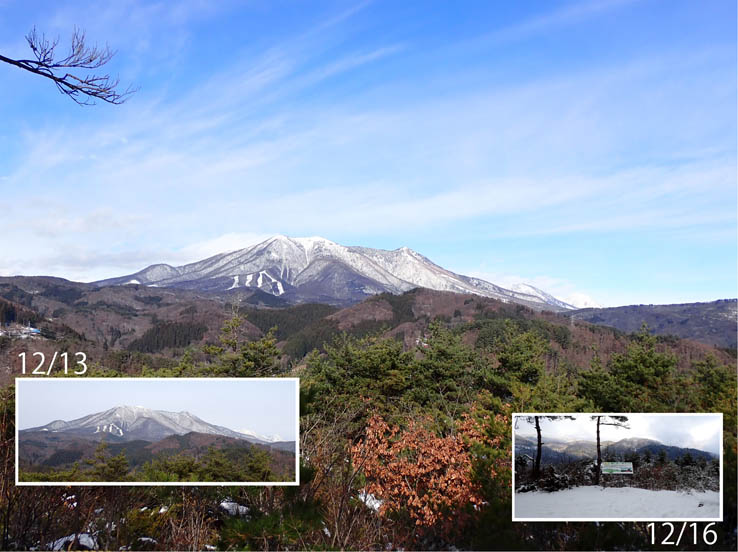 12月中に何度も雪が降り、山は一気に白くなったが、日中晴れると溶けるのも早い。降っては溶け、降っては溶けているうちに少しずつ白い部分が増えて一面白い根雪になるのは年が明けてからだろうか。