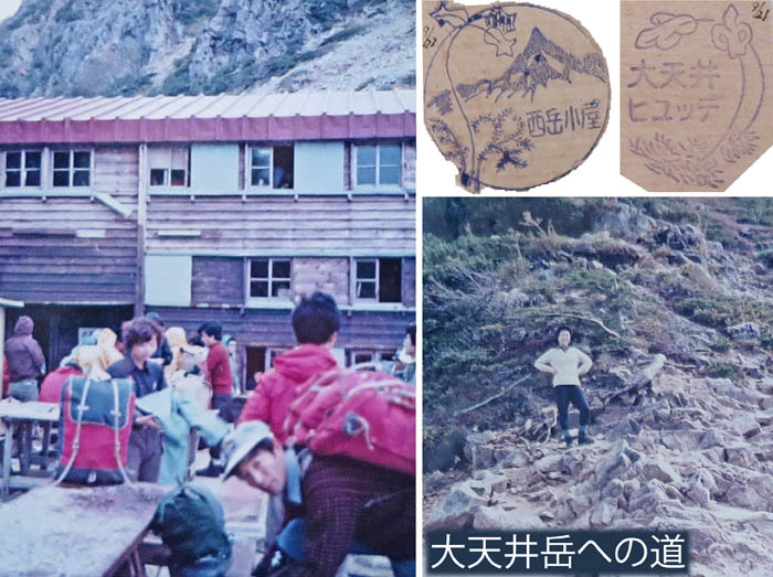 単独行なので、あまり写真は残っていない。互いにカメラを渡して写真を取り合っているのが普通の光景だった。フィルムなので、今のように出来栄えを確認することはできない。現像してからのお楽しみだ。ちなみに私の燕岳山頂写真は見るたびに吹き出しそうになる「チャップリン(チャールズ・チャップリン:映画監督、俳優1889-1977」スタイルなのだ。