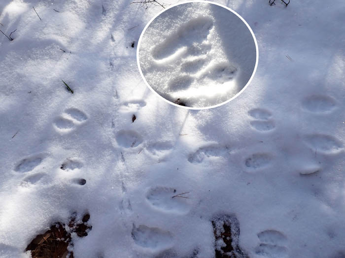真っさらな雪の上には野うさぎの足跡がたくさん残っていて、一体どこに潜んでいるのだろうと首を傾げる。この山にこれほどの野うさぎがいるのならどこかで出会ってもいいのに・・・と思うのだが、日中歩いていて会ったことは無い。
