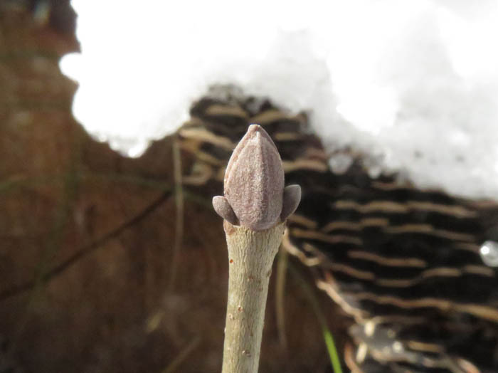 マツやヒノキ、ネズミサシ、ソヨゴなどは緑の葉を光らせているが、山の斜面には茶色が広がっている。例年に比べれば雪は少ないし気温も高めの大寒だが、植物はまだ動き出さない。そっと春が来るまでの準備をしているのだ。地面の下で、木々の枝先で。