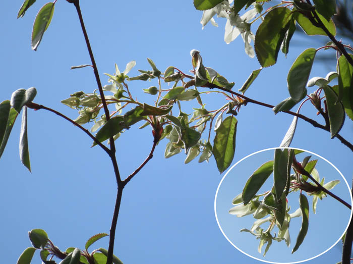 さてたった二日の間にシデザクラの木の下にマルバアオダモが花を開いて光っている。下から見上げるとマルバアオダモのキラキラする白い花に隠れてシデザクラの花はほとんど見えない。すでに散ってしまったのかもしれない。幸い、もう少し上のまだ小さい木の花がかろうじて残ってくれていたので、今日も見ることができた。