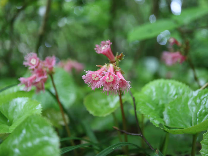 カエルの声が賑やかになってくると袴池が近い。池の傍にはオオイワカガミの花がまだ咲いていた。イワナシはすでに実が膨らんでいる。水の中には白い塊がふわふわと沈んでいるのが見える。黒山椒魚の卵だ。そしてその奥に緑の葉が広がり、ところどころに純白の花穂が揺れている。ミツガシワが咲き出した。まだ花数は少ないが、遠くからでも美しい花穂の姿が鮮やかだ。