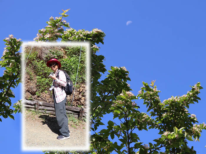 山道をぐんぐん登って清泉寮の広々とした高原に到着。県立ふれあいセンターの駐車場に車を停める。ここからゆっくり歩いて10分ほどのところに青いケシが咲くという。深い森の中の道、サラサドウダンは満開だ。足元にはオククルマムグラの白い花が散らばっている。入場料を払って森の奥へ行くと小さな庭園があった。青いケシは石に囲われ、すっくと伸びて咲いている。だが、どの花も「暑いよ」と言いたいように太陽に背を向けている。25℃以上は苦手で30℃になると枯れることもあるそうだ。今日はすでに30℃近いだろう。かわいそうに。