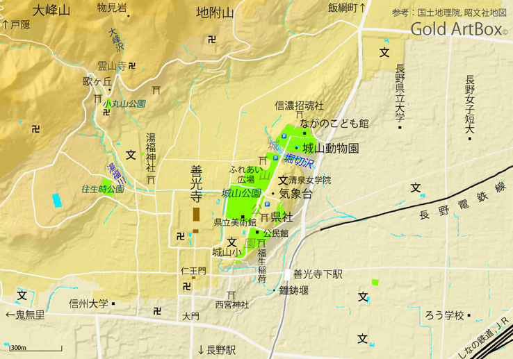 真夏の城山は静かだった。すぐ下には善光寺と、夏休みで賑わう公園の音がさざなみのように寄せてくるのだが、ここだけ別の空気が広がっている。