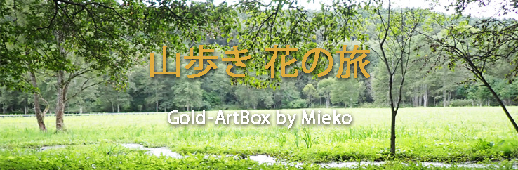 大谷地湿原はちょうど草刈りをしたばかり、まだ草いきれの匂いがしてきそうな風景だ。このところ雨が多いので、湿原の端を流れる沢水は勢いがいい。まず、中央の遊歩道を湿原の真ん中に向かって少し歩く。正面に見えるはずの飯縄山は雲の中、残念。長野市内は青空が広がっていたのだけれど、山に入るにつれて雲が多くなり、今は全くの灰色一色だ。