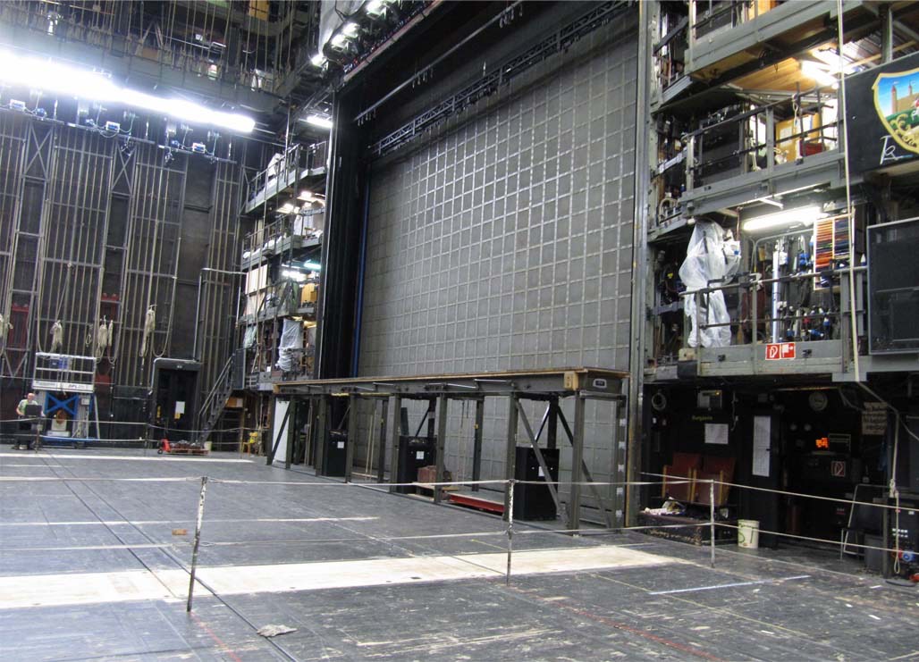 ガイドツアーはウィーンの方が楽しかった。日本語で意味が分かるからということはもちろん大きな理由だが、劇場だけでなくサロンのような部屋がいくつもあり、それぞれにテーマがあるので、楽しめるのだ。(写真)また、他ではなかなか見られない、バックステージも見ることができた。ステージを広いと思っているが、バックはさらに広い。何層にも用意されている幕やライト。見学していた時にも、まさにライトなどの取り付けをやっていた。見ていてあきない。(写真下)