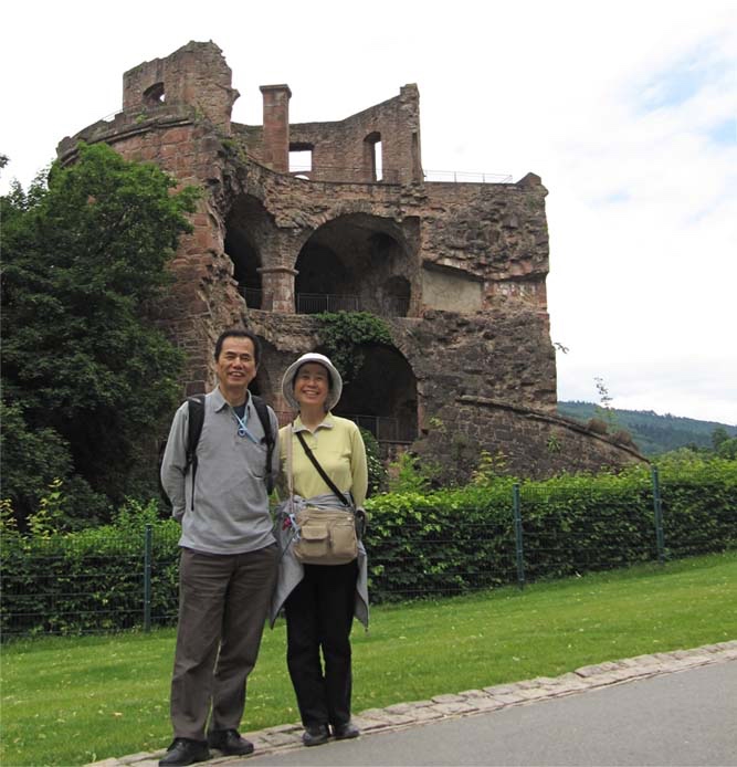 夕食はビアガーデンのようなカントリー風のレストラン。食事は、コールスローサラダに厚いポーク、ザワークラウトが添えてあって、ドイツらしいメニュー。私たちはもちろんビールも添えて。隣り合った最年長だという二組の夫婦と乾杯、私の隣の男性は80代だという(写真132)。私たち夫婦も、彼らの年齢になっても元気に仲良く旅をしたいものだと思う。最後の夕食はいつもより少し時間をかけて、おしゃべりを楽しんだ。