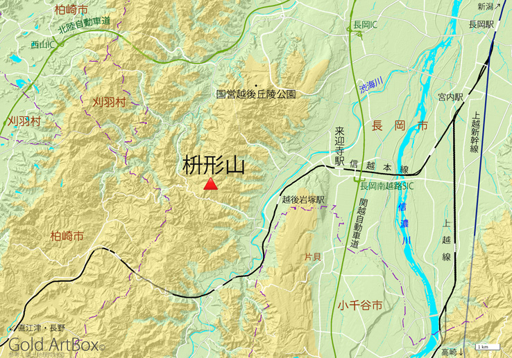 けれど、今日長野へ帰る予定だから、あまりびしょびしょになってまで山歩きをするのもどうだろう。空を見上げながらしばし思案。「時間がなさそうだったら、昔遠足で登った桝形山くらいは歩けるかと思っていたけれど」と私がつぶやくと、「桝形山なら行けるよ」と弟。長岡駅まで行く途中だし、車で上まで上がれるから雨でも大丈夫。