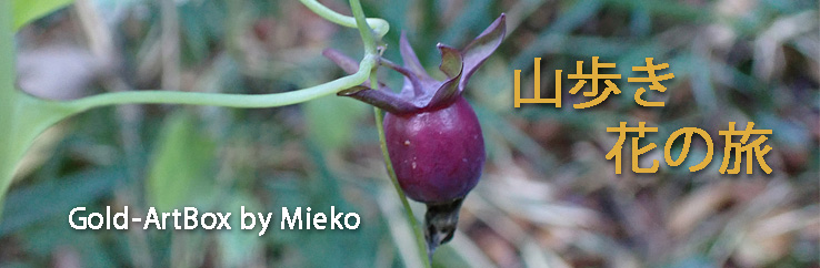 ゆっくり歩いていくとキチジョウソウが咲いていた。ヤブランとそっくりの葉が茂っている。根元を見ると太い根が這い出してその先端に新しい株が育っている。こうやって増えるから群落になっているようだ。キチジョウソウに喜びながら上を見ると、小さな紫の球が葉の影にこっそり隠れている。これがツルギキョウの実。前回来た時も探していて見つけられなかった実だ。実の付け根には萼らしいものが同じく紫色に染まっている。花の頃には筒形の花に添うようにある緑色の萼だが、今はそっくりかえっている姿で、タコの足のように見えて面白い。来年は花の時期に見に来ることができるだろうか。