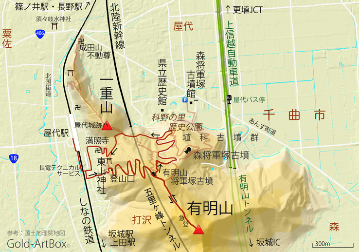 今日は古墳を見下ろしてから屋代駅に向かう。一重山の登山口あたりまでは雪がかなり残っている。登山口近くでようやくアイゼンを外す。あとは屋代駅まで一気に降りよう。