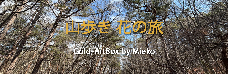 4日)ちょっと雨っぽいけどどうしようかと夫。少し待ってみようかと言っているうちに青空が見えてきて、支度を始める。昨日は全国的な雨だったらしいが、今日も崩れ気味。傘をカバンに入れて歩き出すが、歩いているうちに雲は薄くなってきた。それでも時々思い出したようにポツリと落ちてくる。こんなお天気だからか、山には誰もいない。ここ数日の強い風に落ちたか太い枝が所々に転がっているくらい。北の方は降っているのか、山は雲に隠れて見えない。誰にも会わないのも寂しいねと話しながら今日はちょっと「タツネ」に降りてみようと話す。昔の人はここから駒弓神社へお参りしたという参道だ。